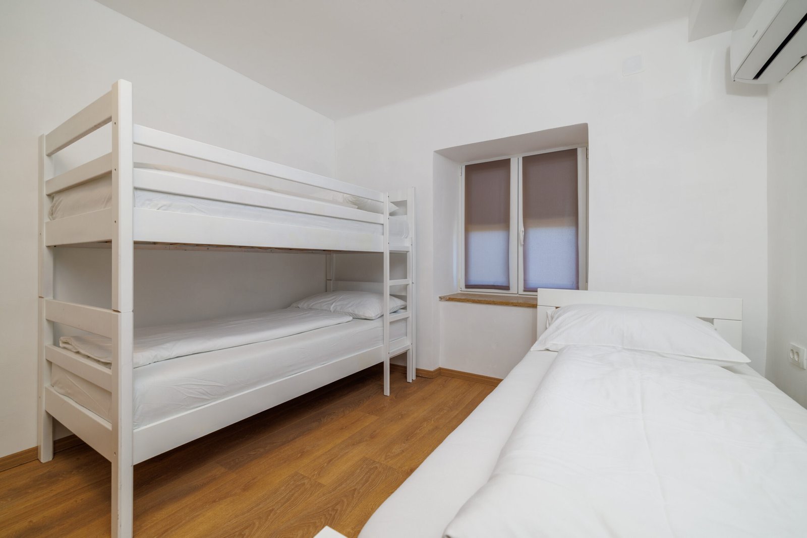 - Kreveti: bračni krevet + single krevet ili tri single kreveta